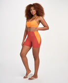 Os tecidos com proteção UV 50+ protegem a pele contra os raios UVA e UVB, bloqueando até 98% da incidência solar. Essa proteção não sai nas lavagens e sua secagem é super rápida, o que é ótimo inclusive para práticas mais intensas, que fazem transpirar bastante. Para quem faz práticas outdoor, as peças com proteção UV 50+ são as mais indicadas.