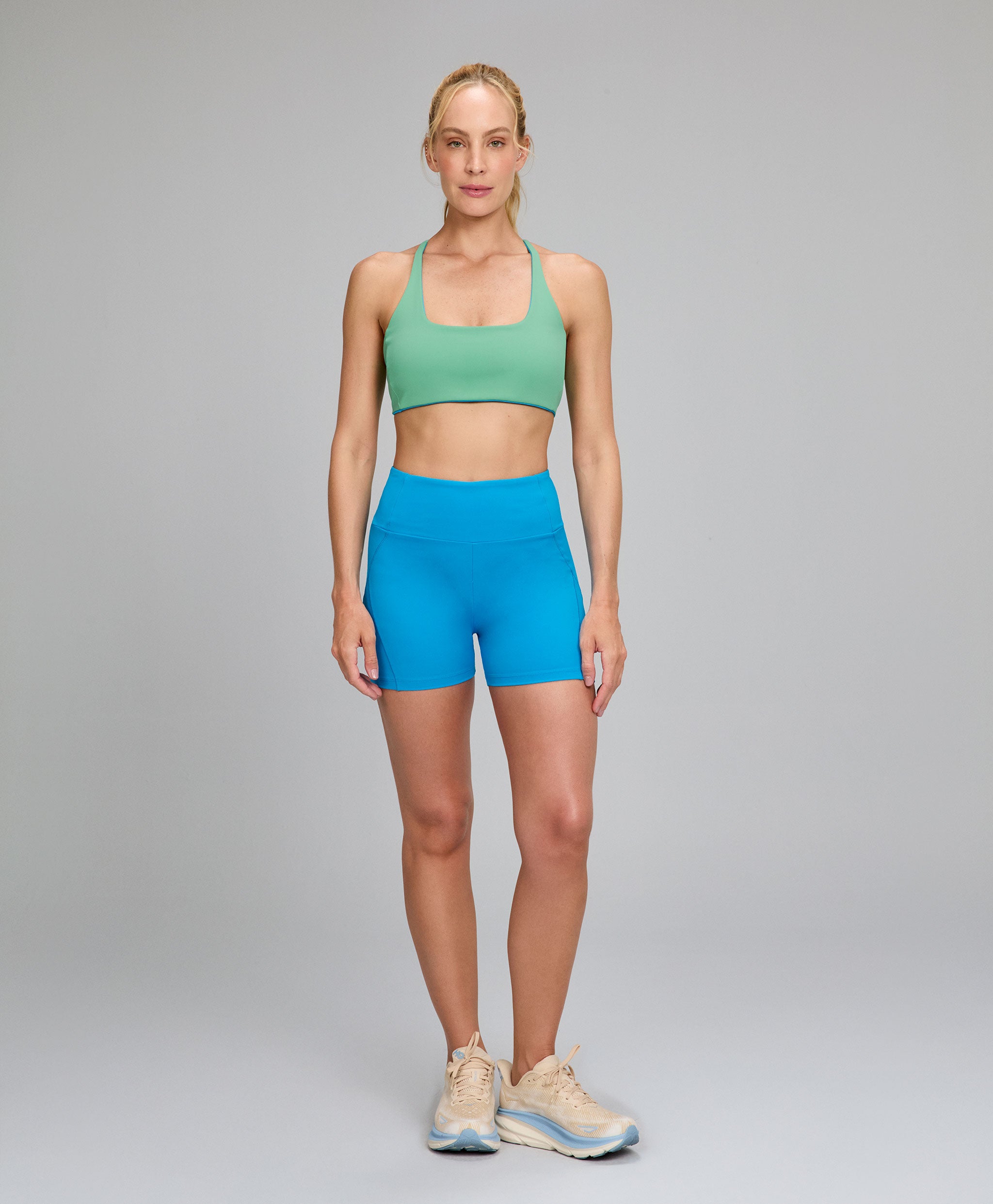 Os tecidos com proteção UV 50+ protegem a pele contra os raios UVA e UVB, bloqueando até 98% da incidência solar. Essa proteção não sai nas lavagens e sua secagem é super rápida, o que é ótimo inclusive para práticas mais intensas, que fazem transpirar bastante. Para quem faz práticas outdoor, as peças com proteção UV 50+ são as mais indicadas.