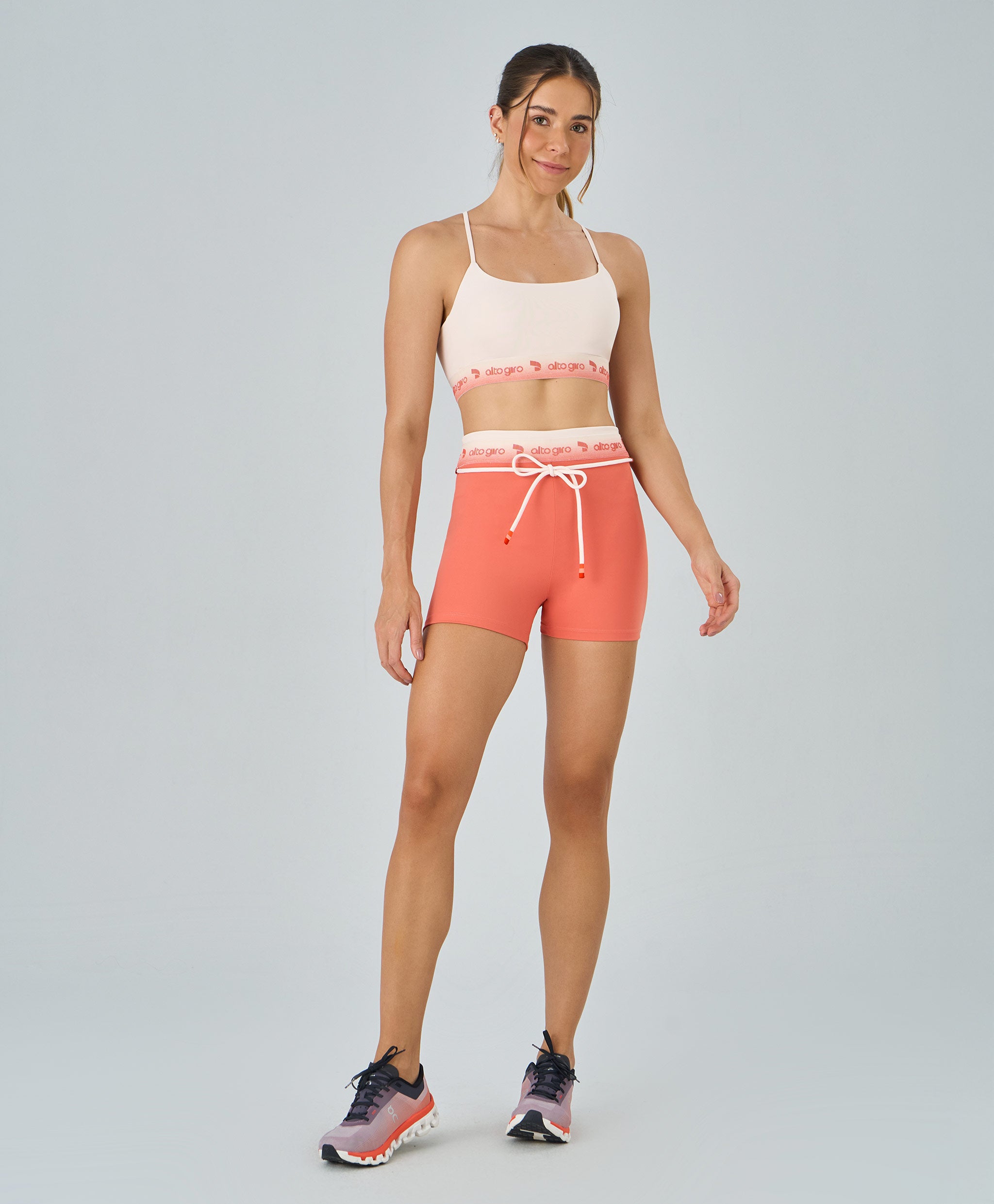 Bermuda Elástico Degradê com Cordão confeccionada em tecido de poliamida, oferecendo boa cobertura, alta compressão e proteção UV. Modelo com cós alto que proporciona firmeza e conforto, valorizando a silhueta. Elástico degradê personalizado adiciona identidade e estilo moderno à peça, enquanto o cordão decorativo com ponteiras reforça a pegada fashion e o visual diferenciado.