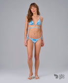Biquíni Cortininha em tecido macio com estampa exclusiva, proteção UV e boa cobertura. Busto forrado com bojo removível, amarração com pingente dourado em formato de concha, que traz versatilidade e personalidade. Tanga slim com bumbum duplo, ajustes laterais e ponteiras metalizadas Alto Giro, unindo conforto e estilo para o verão.
