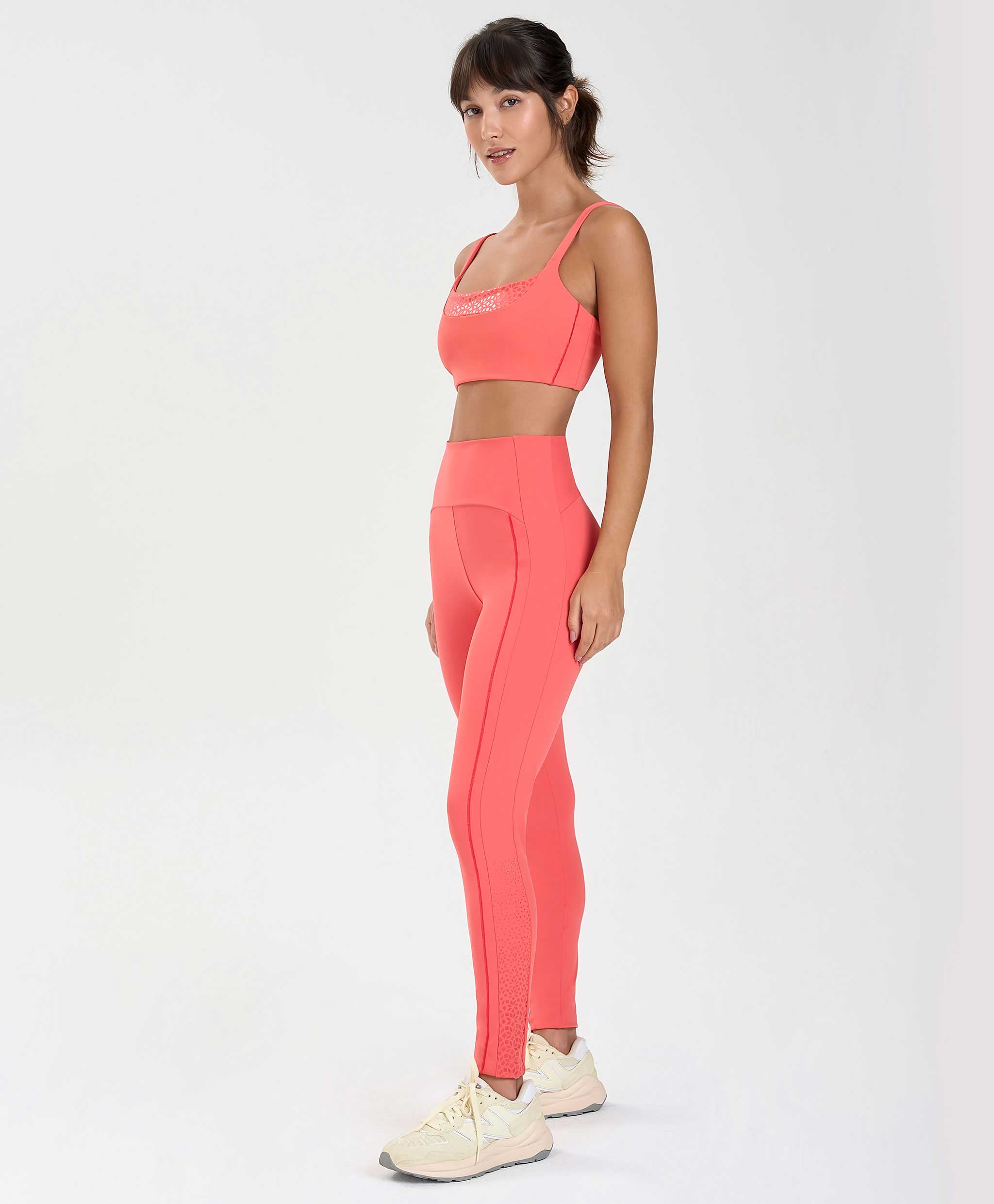 Os tecidos com proteção UV 50+ protegem a pele contra os raios UVA e UVB, bloqueando até 98% da incidência solar. Essa proteção não sai nas lavagens e sua secagem é super rápida, o que é ótimo inclusive para práticas mais intensas, que fazem transpirar bastante. Para quem faz práticas outdoor, as peças com proteção UV 50+ são as mais indicadas.