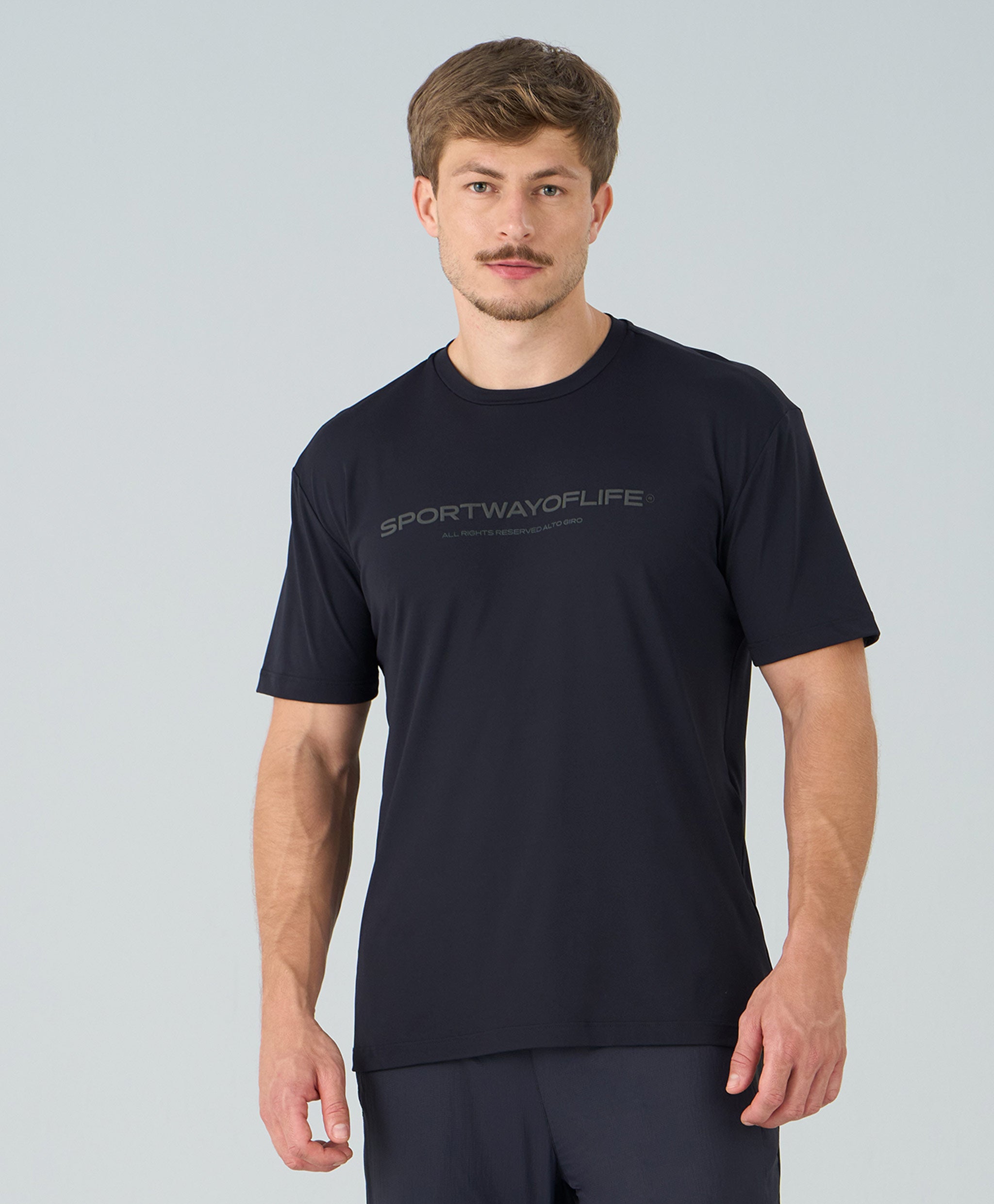 A Camiseta Sport Estampada possui design versátil com gola redonda, mangas curtas e modelagem regular, garantindo conforto e ótimo caimento. Confeccionada em tecido com proteção UV e tecnologia Easy Care, oferece durabilidade e facilidade no cuidado diário. A estampa exclusiva Alto Giro adiciona personalidade ao visual, disponível na variante azul vinil.