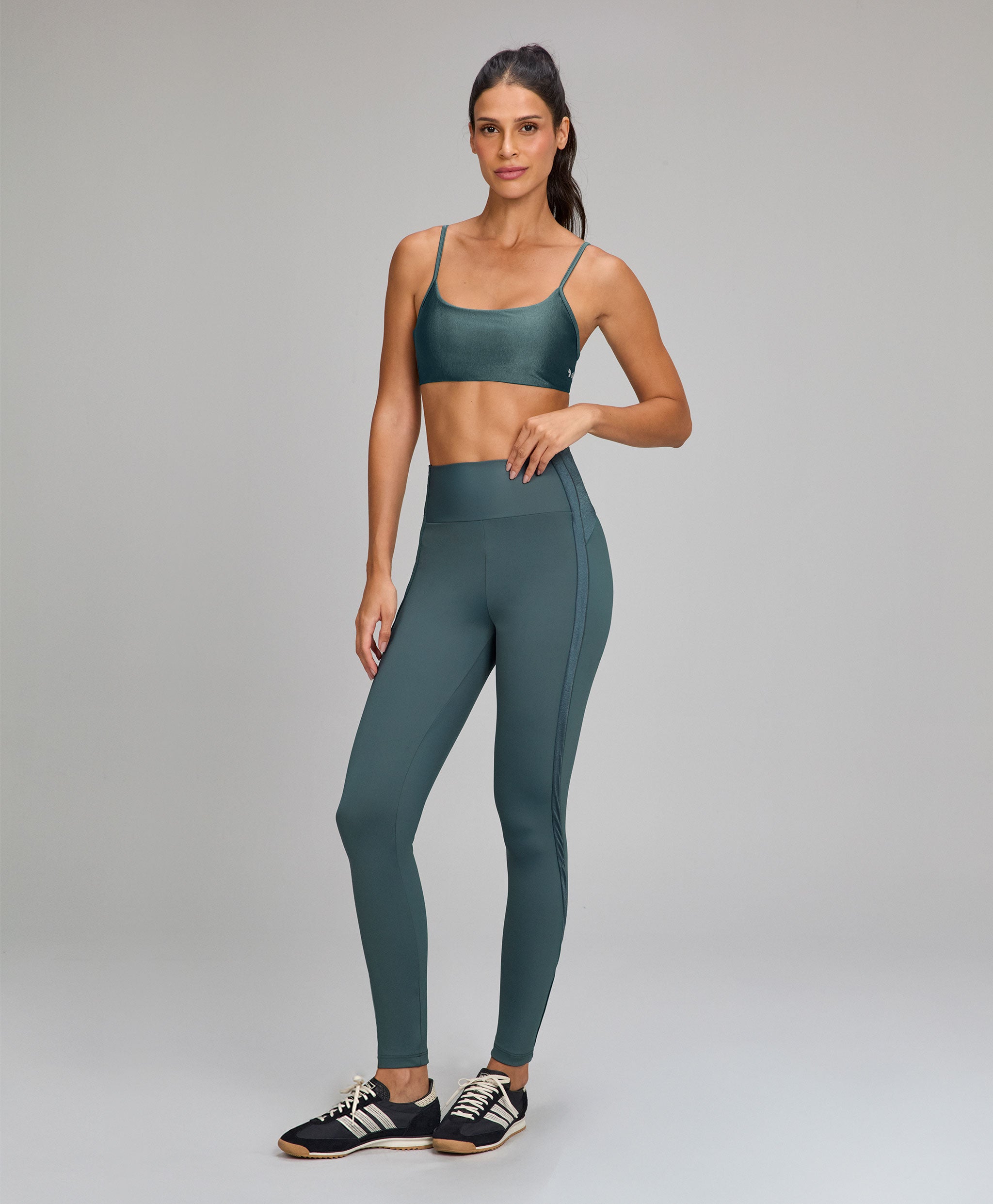 A legging recortes Shine traz um visual moderno e sofisticado, combinando recortes em tecido opac...