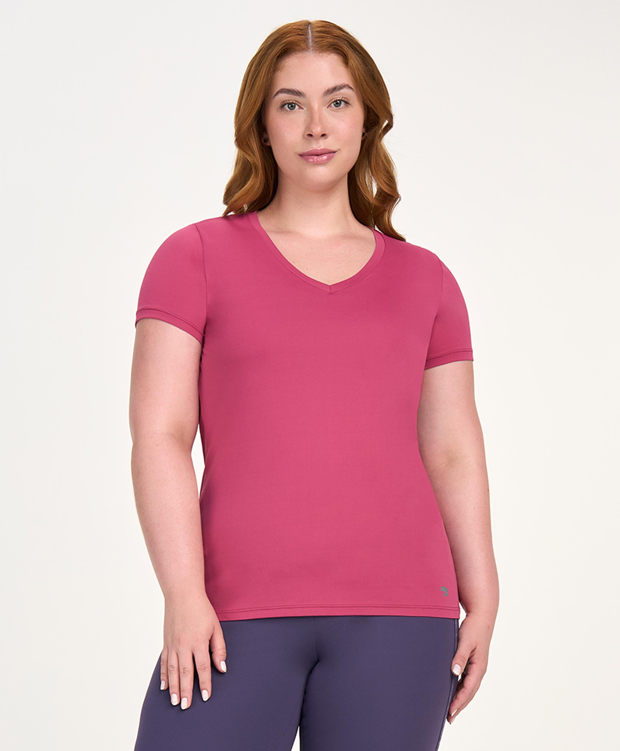 A T-shirt Decote V Alongada Plus apresenta uma modelagem alongada com caimento solto, proporciona...