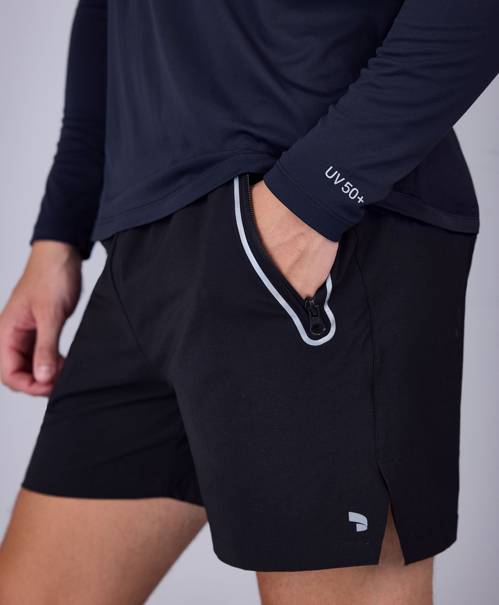 Os tecidos com proteção UV 50+ protegem a pele contra os raios UVA e UVB, bloqueando até 98% da incidência solar. Essa proteção não sai nas lavagens e sua secagem é super rápida, o que é ótimo inclusive para práticas mais intensas, que fazem transpirar bastante. Para quem faz práticas outdoor, as peças com proteção UV 50+ são as mais indicadas.