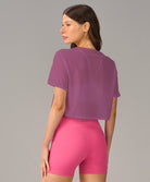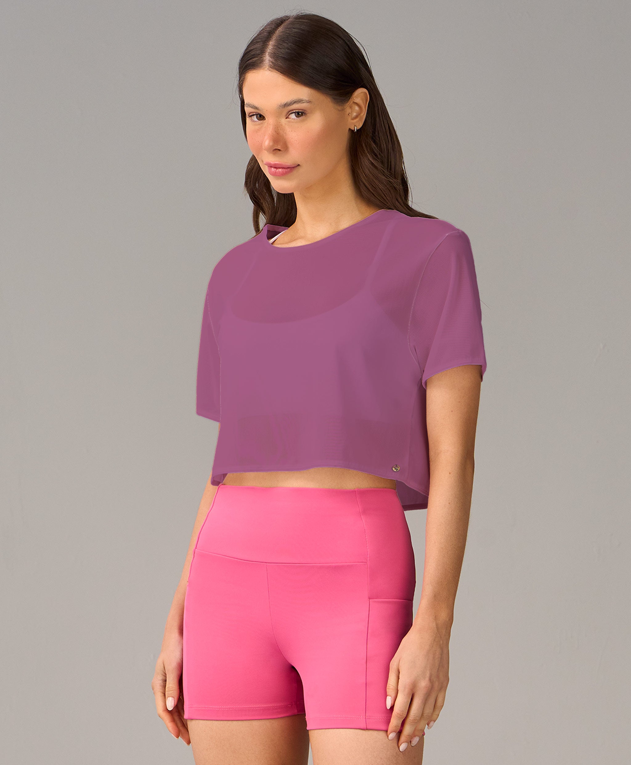 T-shirt Cropped Tule em tecido leve e transparente, ideal para sobreposições cheias de estilo. Mo...