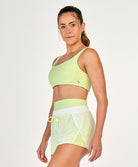 Os tecidos com proteção UV 50+ protegem a pele contra os raios UVA e UVB, bloqueando até 98% da incidência solar. Essa proteção não sai nas lavagens e sua secagem é super rápida, o que é ótimo inclusive para práticas mais intensas, que fazem transpirar bastante. Para quem faz práticas outdoor, as peças com proteção UV 50+ são as mais indicadas.
