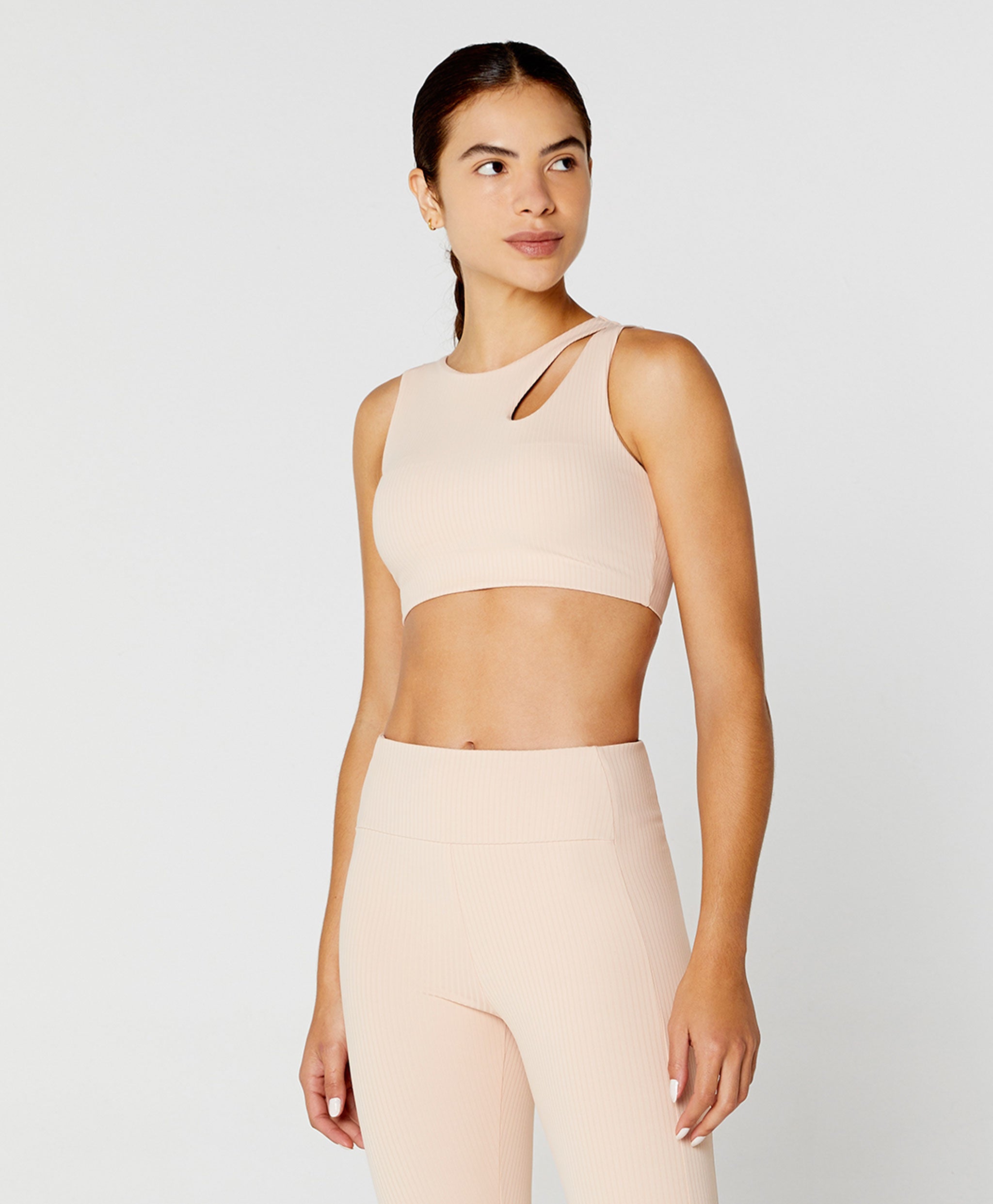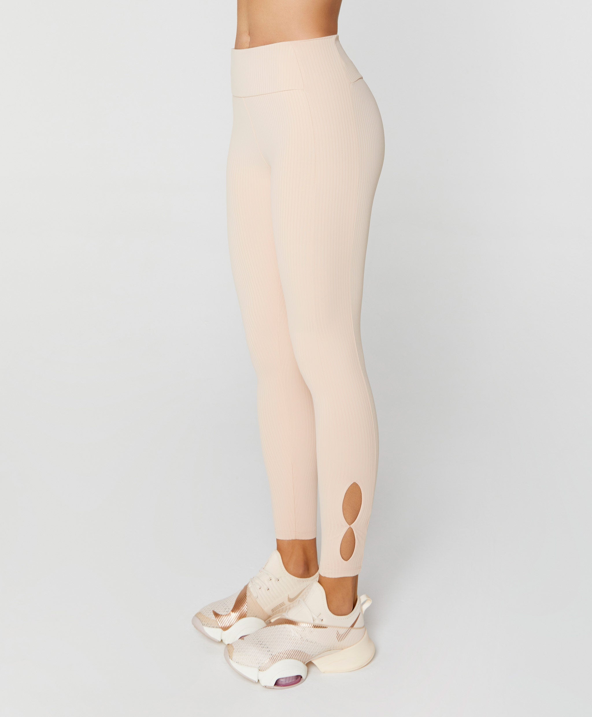 Leggings in ribbed fabric with opening detail at the hem, high waistband with V-shaped design that provides a butt-lifting effect, great compression so you feel super comfortable and safe during your sports activities.