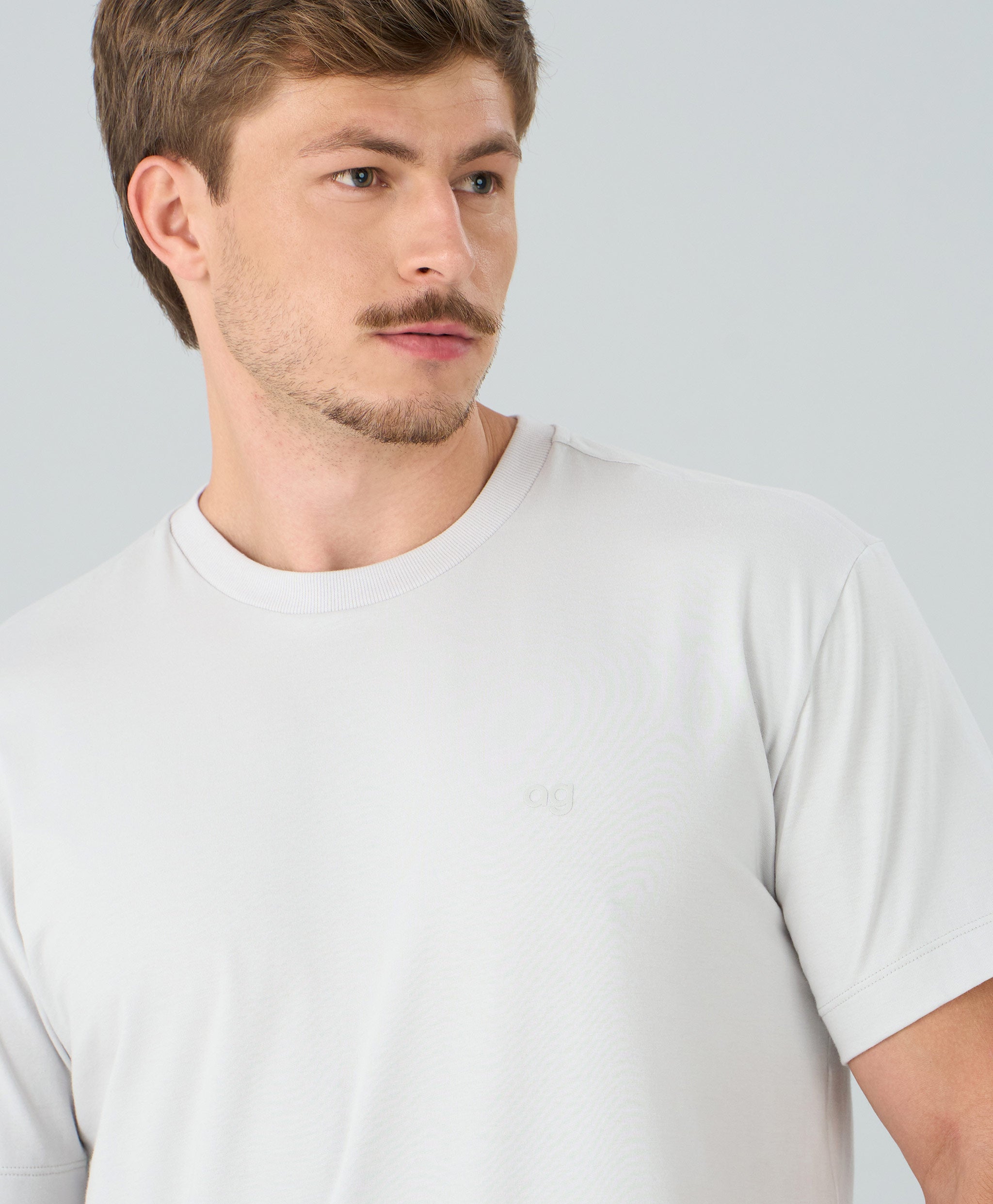 Características - Modelo com gola redonda, comprimento regular e mangas curtas - Estampa com logo Alto Giro na parte da frente da peça - Peça confeccionada em malha pima de algodão exclusivo da Alto Giro, elaborado para o cliente AG com tecnologia stay fresh e anti odor que impede a proliferação de bactérias que causam o mal odor. - O modelo possui variantes nas cores: preto, branco e bege escuro. Diferenciais: - Easy care - Stay fresh - Antibacteriano - Tecido exclusivo - Estampa exclusiva