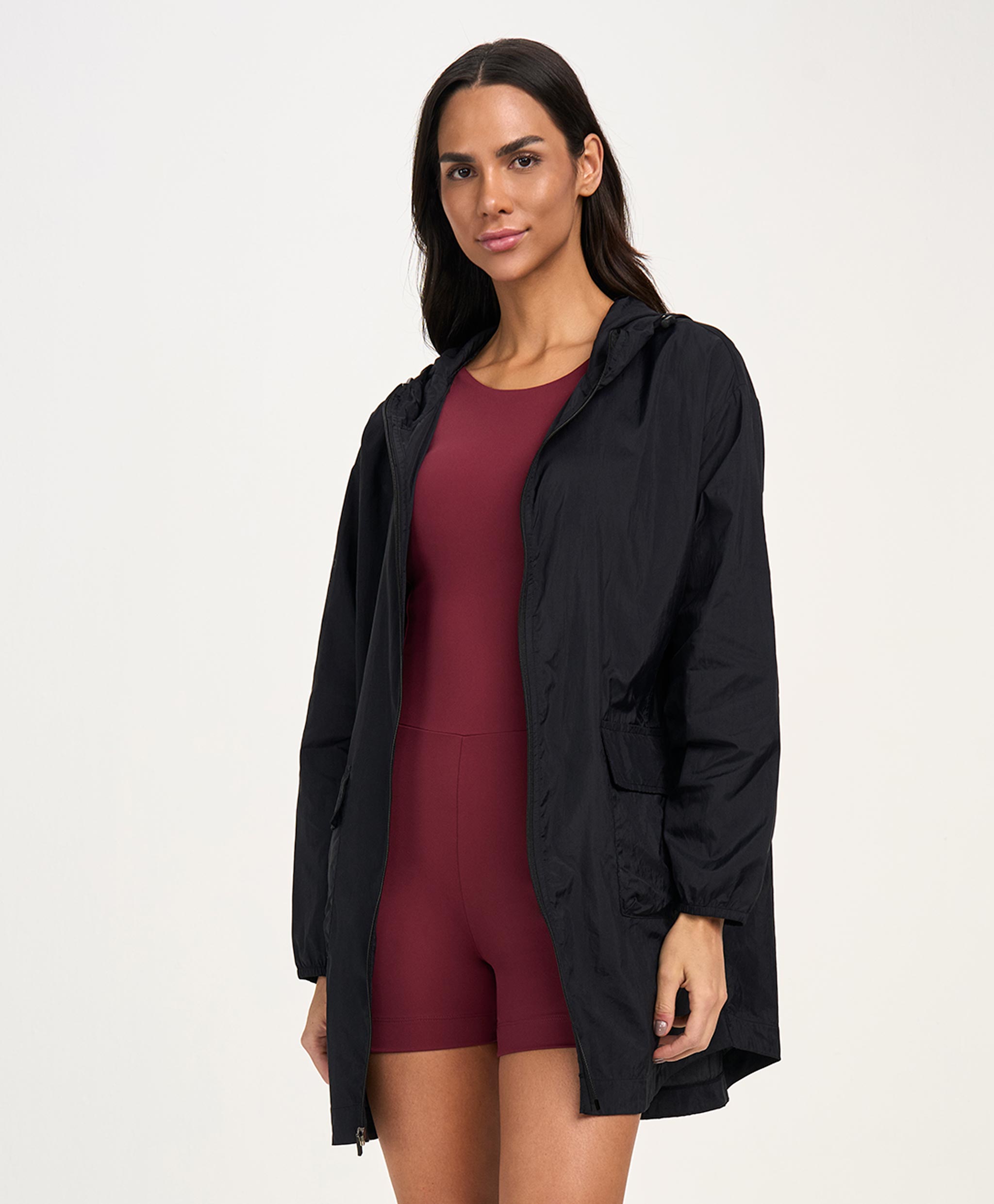 Long Windbreaker Jacket With Hood