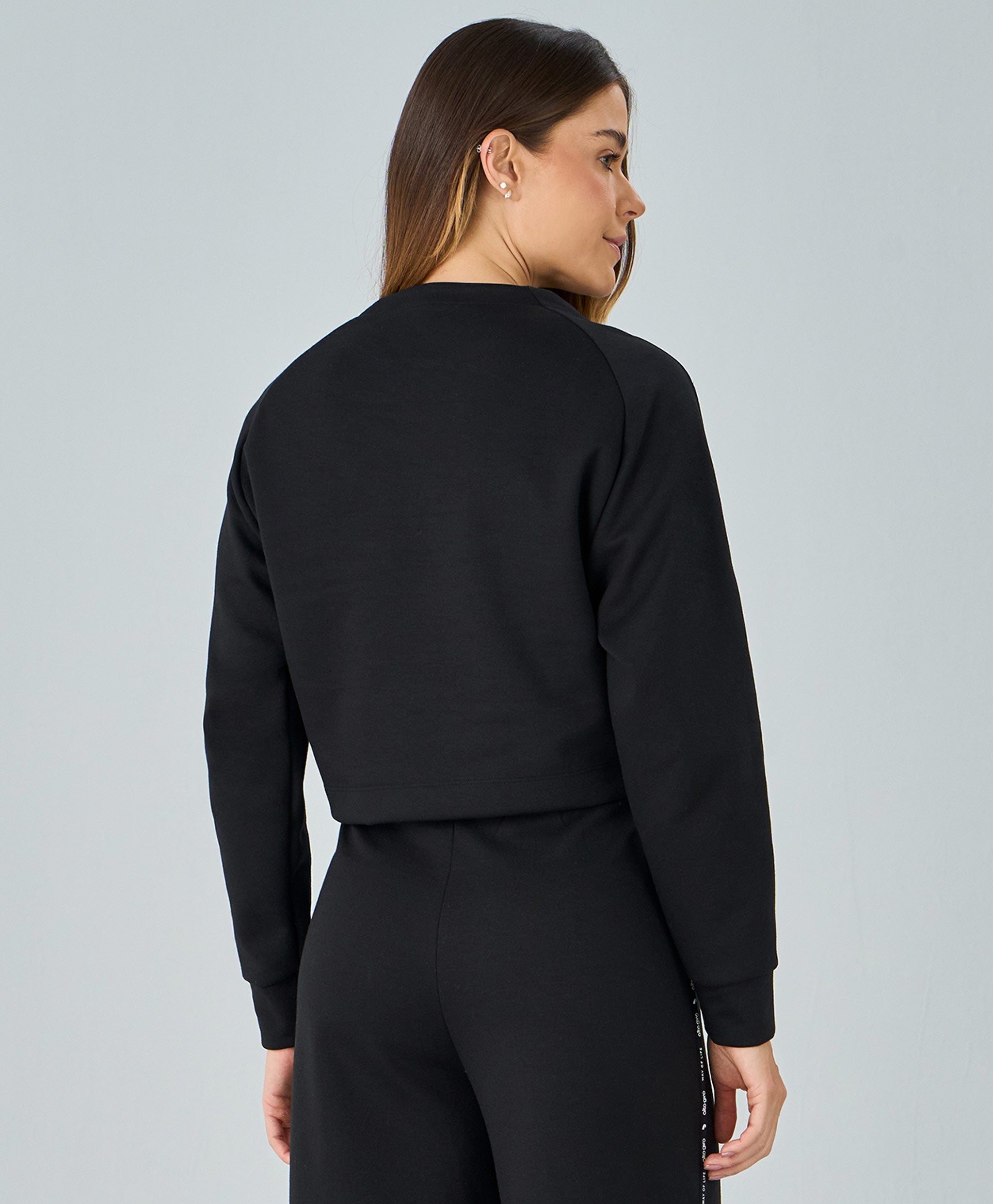 Blusa Raglan com Elástico Personalizado confeccionada em malha dupla estilo moletom, sem felpa, oferecendo conforto térmico, caimento sofisticado e toque agradável. Modelo cropped com gola careca, mangas raglan e punhos duplos, com elástico personalizado nas laterais, agregando estilo exclusivo à peça.