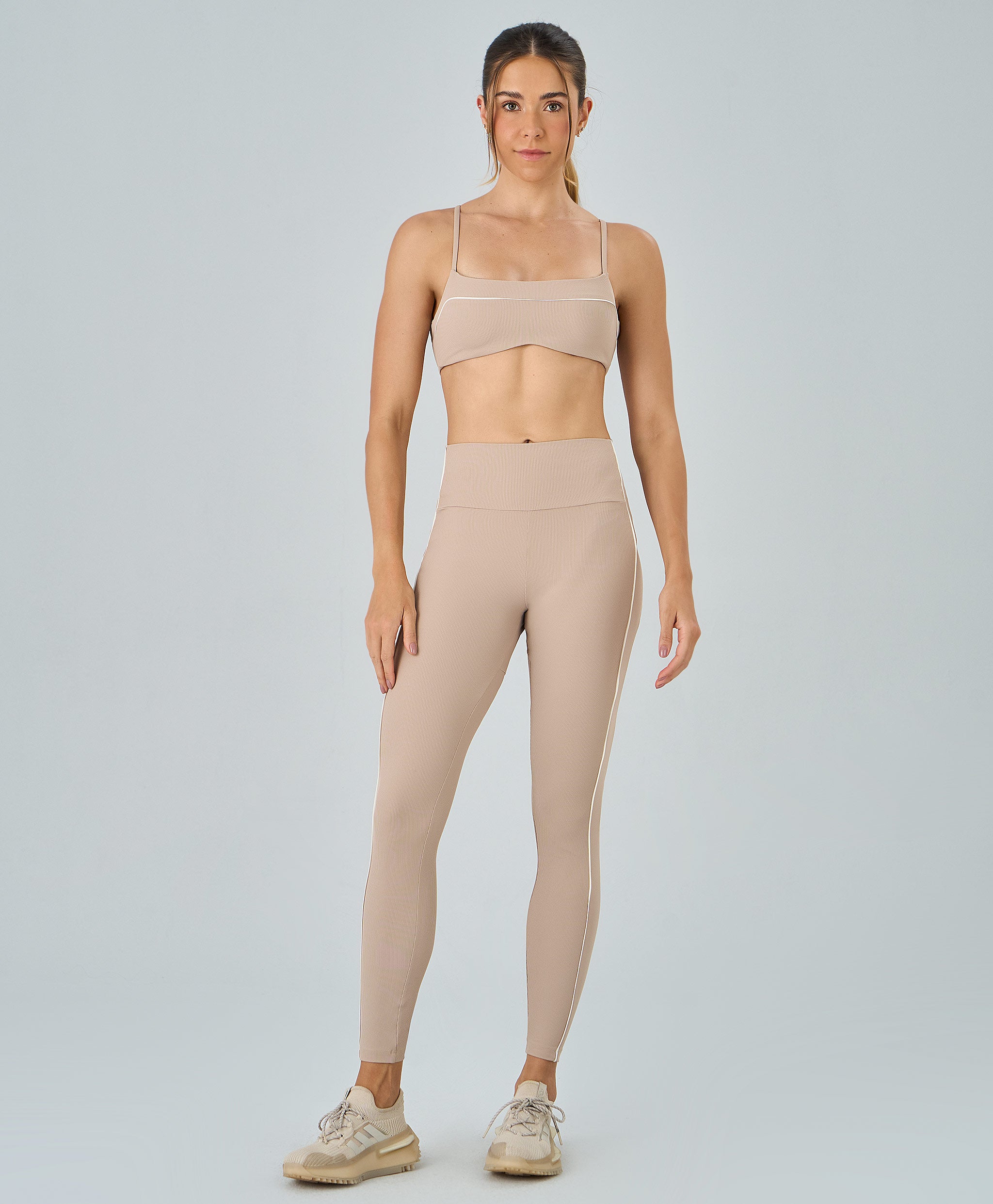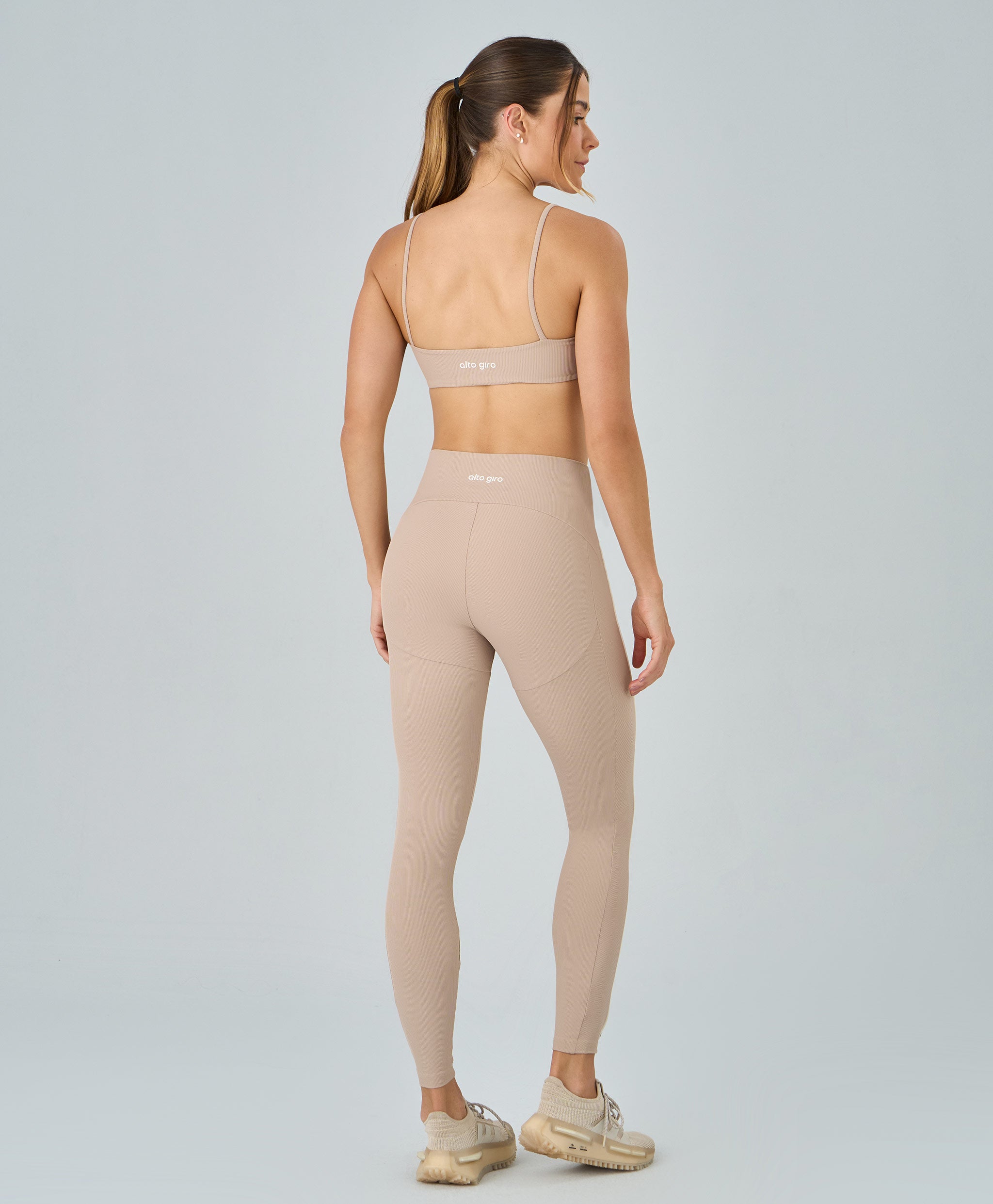 Legging Rib Cós Alto confeccionada em tecido de textura canelada que une conforto e estilo. Possui cós alto que valoriza a silhueta e oferece firmeza durante o uso. O recorte lateral com friso aplicado alonga o visual, enquanto a personalização Alto Giro na parte posterior do cós adiciona identidade e sofisticação à peça.