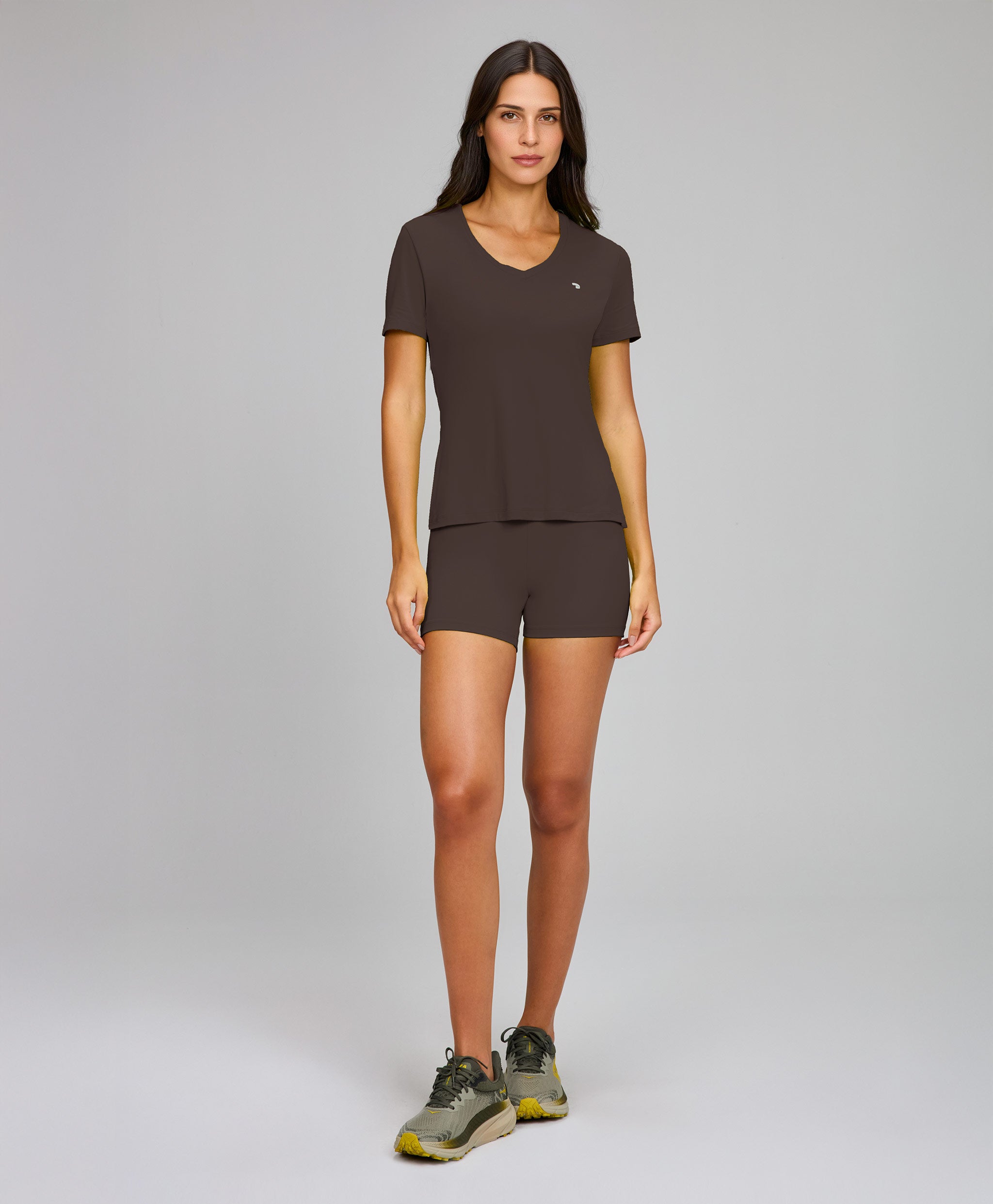 Os tecidos com proteção UV 50+ protegem a pele contra os raios UVA e UVB, bloqueando até 98% da incidência solar. Essa proteção não sai nas lavagens e sua secagem é super rápida, o que é ótimo inclusive para práticas mais intensas, que fazem transpirar bastante. Para quem faz práticas ​outdoor, ​as peças com proteção UV 50+ são as mais indicadas.