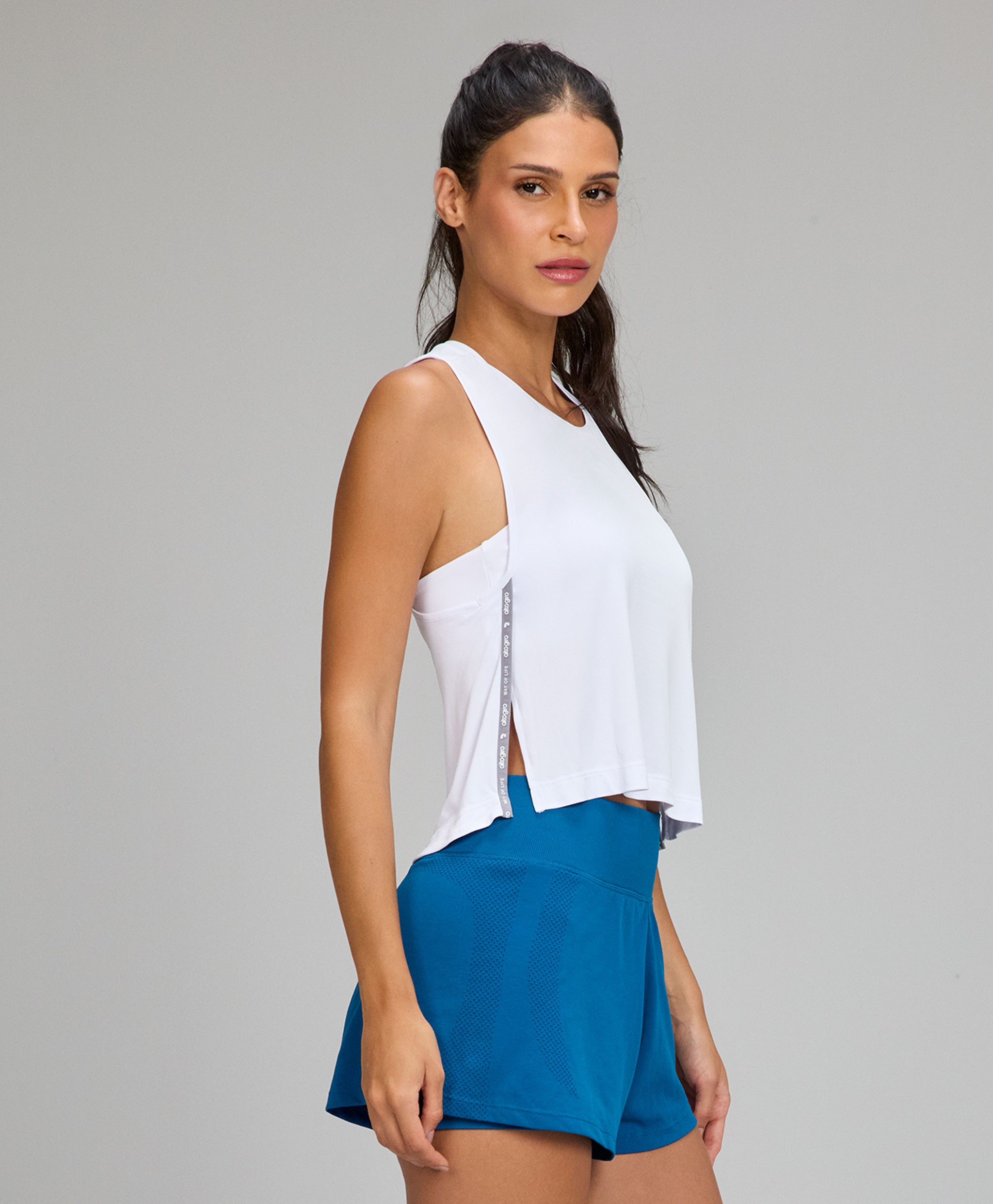Os tecidos com proteção UV 50+ protegem a pele contra os raios UVA e UVB, bloqueando até 98% da incidência solar. Essa proteção não sai nas lavagens e sua secagem é super rápida, o que é ótimo inclusive para práticas mais intensas, que fazem transpirar bastante. Para quem faz práticas ​outdoor, ​as peças com proteção UV 50+ são as mais indicadas.