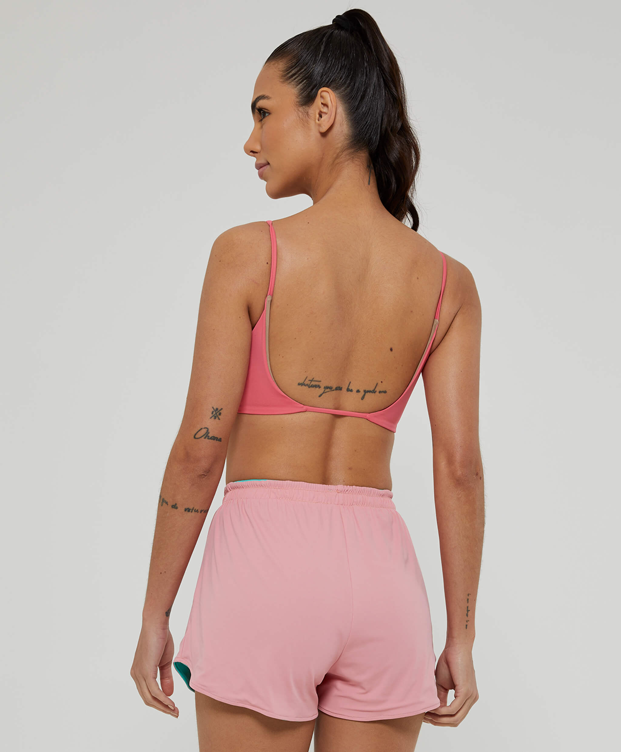 Os tecidos com proteção UV 50+ protegem a pele contra os raios UVA e UVB, bloqueando até 98% da incidência solar. Essa proteção não sai nas lavagens e sua secagem é super rápida, o que é ótimo inclusive para práticas mais intensas, que fazem transpirar bastante. Para quem faz práticas outdoor, as peças com proteção UV 50+ são as mais indicadas.