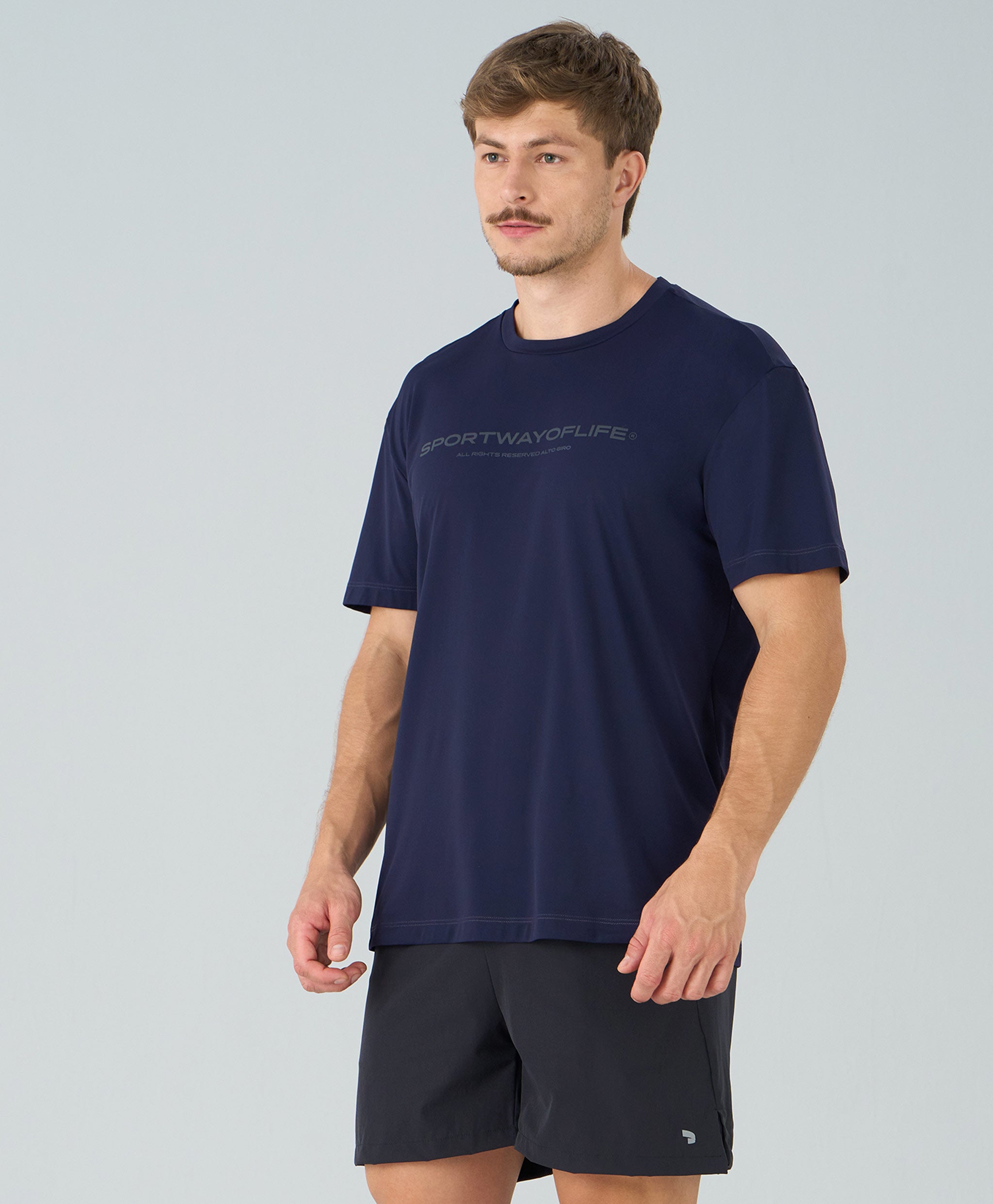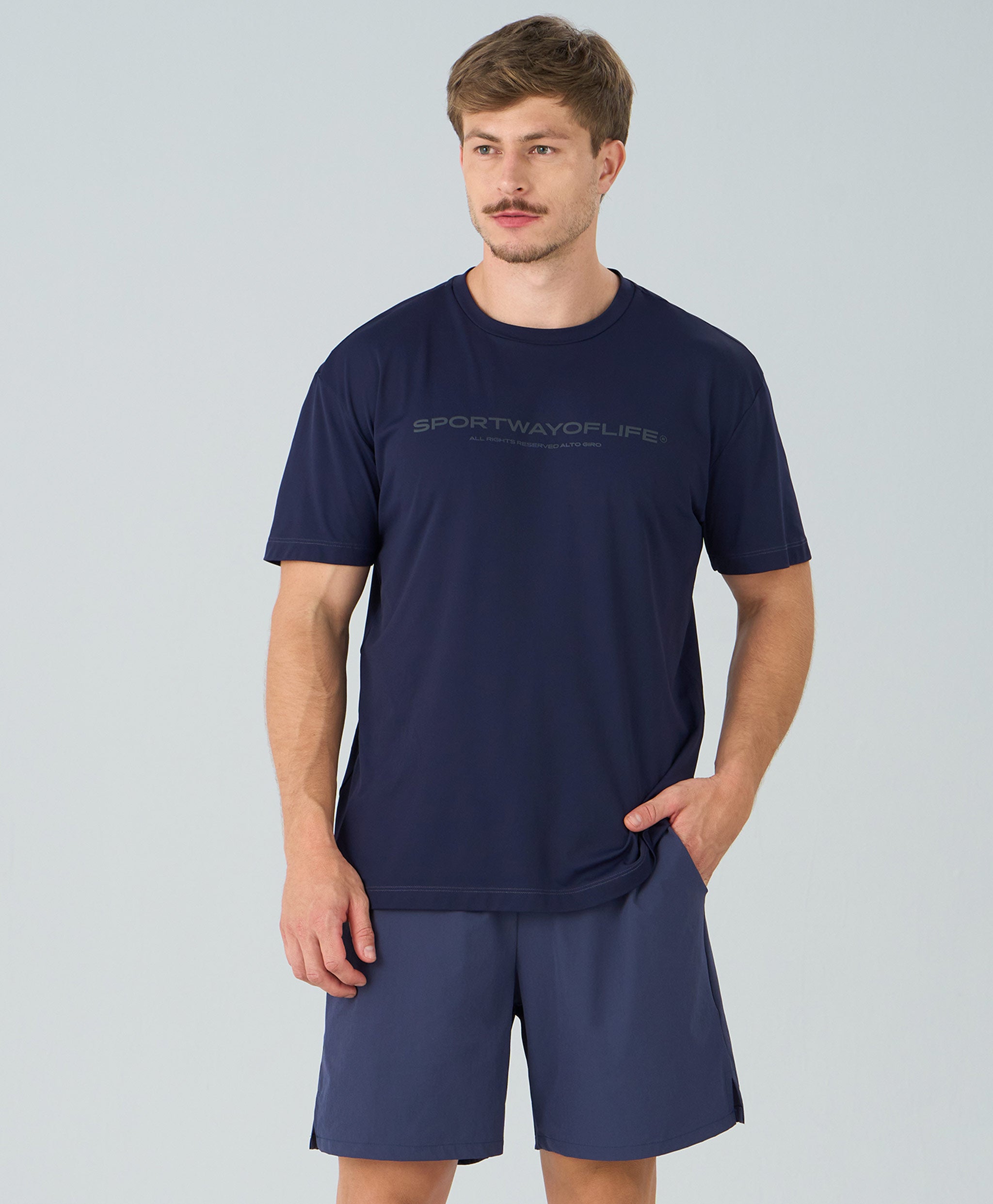 A Camiseta Sport Estampada possui design versátil com gola redonda, mangas curtas e modelagem regular, garantindo conforto e ótimo caimento. Confeccionada em tecido com proteção UV e tecnologia Easy Care, oferece durabilidade e facilidade no cuidado diário. A estampa exclusiva Alto Giro adiciona personalidade ao visual, disponível na variante azul vinil.