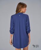 Chemise Manga 7/8 em tecido macio com proteção UV, garantindo conforto e versatilidade. Manga com botão para ajuste de comprimento e abotoamento frontal para praticidade. Peça leve e funcional, perfeita para complementar o look pós-praia com estilo e proteção.