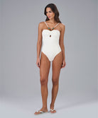 Maiô com busto franzido confeccionado em tecido texturizado exclusivo, que garante sofisticação e...