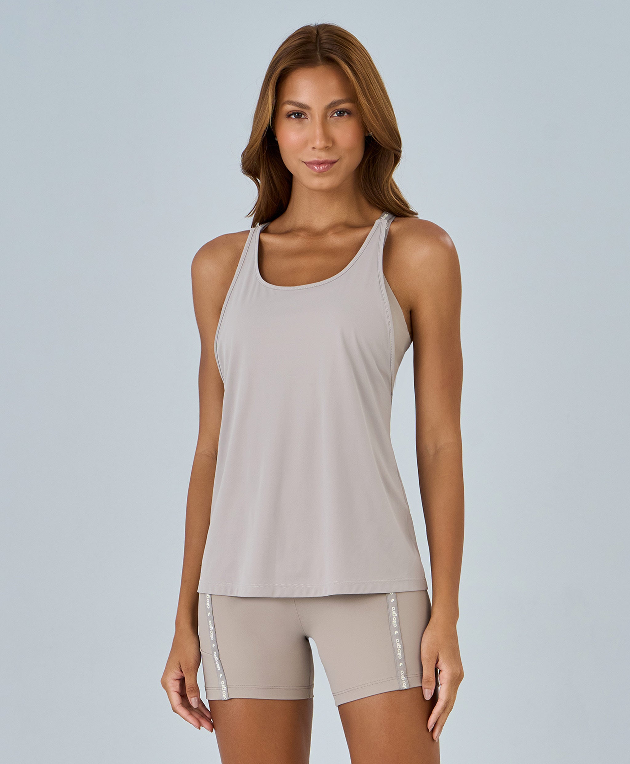 Regata com Elástico Alto Giro em V em poliamida de toque macio com proteção UV, garantindo conforto e praticidade com tecnologia easy care. Modelo de shape solto, decote redondo e comprimento regular. Detalhe de elástico personalizado e refletivo acrescenta estilo e identidade à peça.