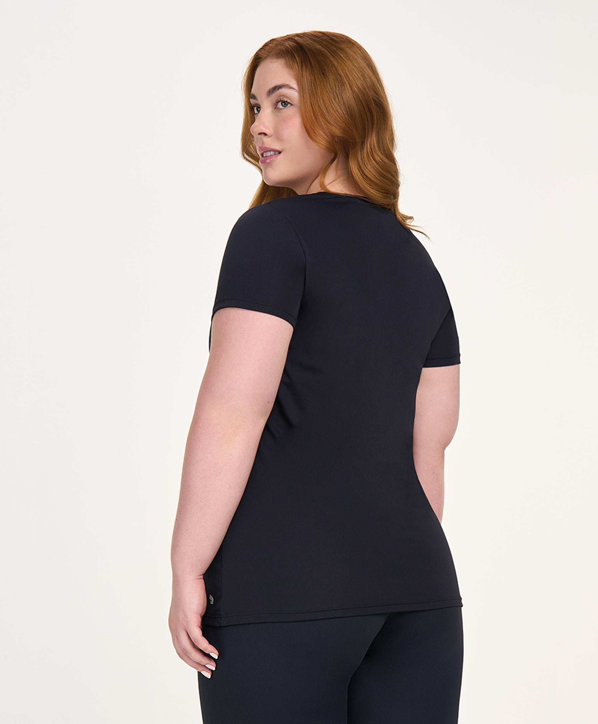 A T-shirt Decote V Alongada Plus apresenta uma modelagem alongada com caimento solto, proporciona...